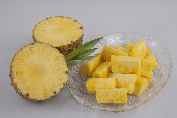상큼하고 달콤한 맛의 파인애플은 100g당 53㎉의 칼로리를 포함하고 있습니다. 파인애플에 함유된 ‘브로멜린’이라는 성분 들어보셨나요? 브로멜린은 염증을 줄여주고 면역력을 높이는 데 도움을 주며, 소화 및 신진대사를 촉진하여 체지방 감소에 도움을 주는 성분입니다. 또한 브로멜린이 단백질 분해 효소를 다량으로 함유하고 있어 고기와 함께 먹기 좋은 과일입니다. 따라서 식사와 함께 먹거나 후식으로 섭취하기에 모두 좋은 과일인 셈이죠